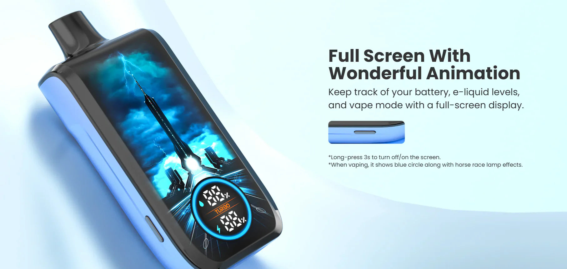 - Smart Screen Display: Monitors battery level + e-liquid level at a glance.
